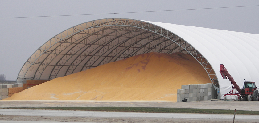 Однослойный каркасно-тентовый ангар 35х29х15м